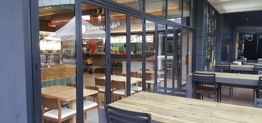 Hasil pemasangan Pintu Lipat EZfolding pada untuk Project Kafe di Daerah Jakarta.