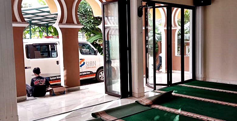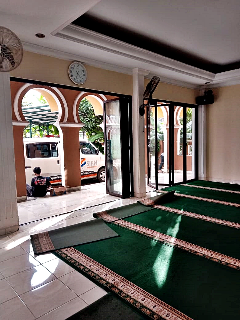 Hasil pemasangan Pintu Lipat EZfolding pada tanggal 11 April 2019 untuk Project Masjid Jami Nurul Iman di Tangerang.