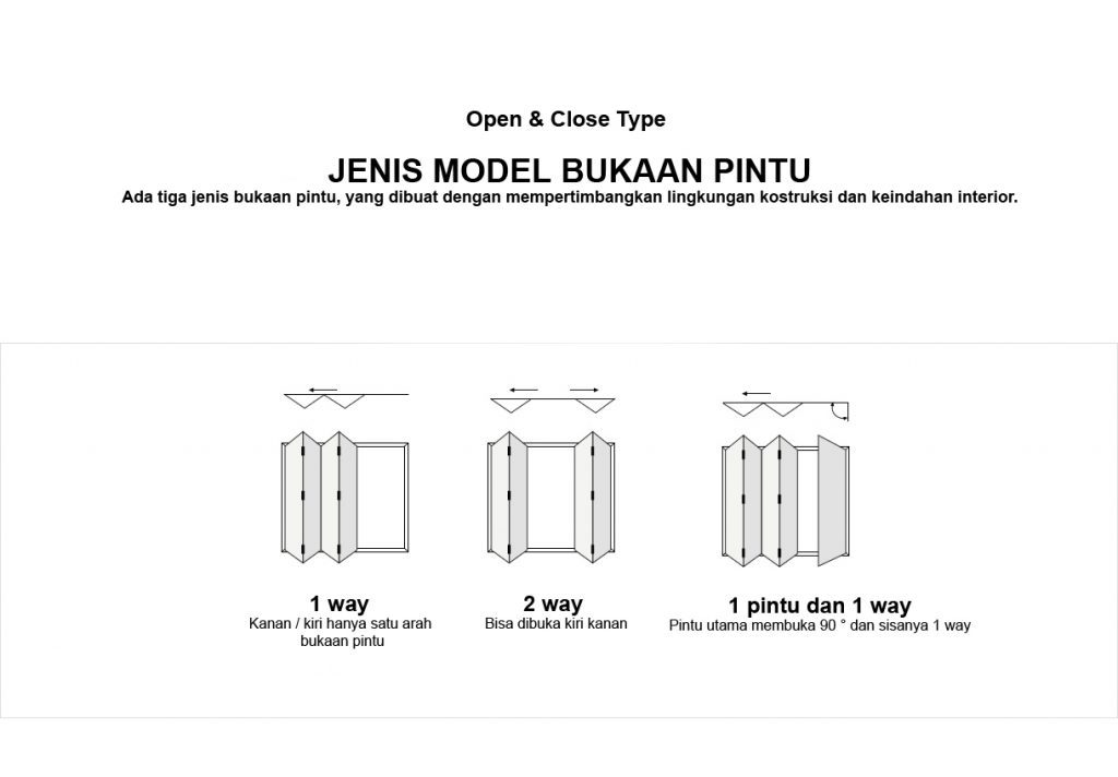 Ambil dunia, ambillah ruang. Hanya pintu lipat yang dapat membuka dan menutup pintu dengan sangat mudah, sehingga pemanfaatan ruangan menjadi lebih maksimal.